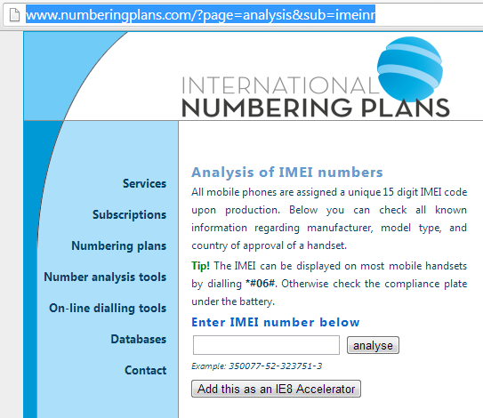 2- وارد این صفحه شوید و کد IMEI گوشی خود را وارد نمایید. سپس دکمهی Analyse را کلیک نمایید.